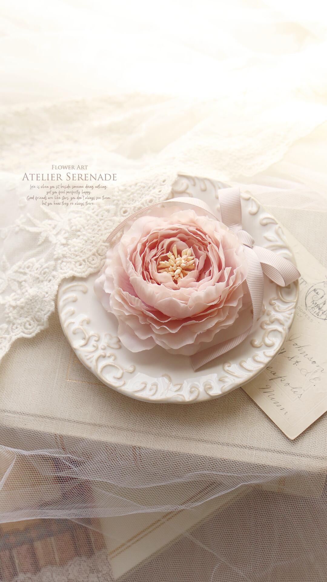 ※デリケートな素材を使用しておりますので、振動や衝撃等で花びらや葉が落ちてしまうことがございます。また、素材のほつれや加工による粉の剥がれ等がみられます。あらかじめご了承ください。