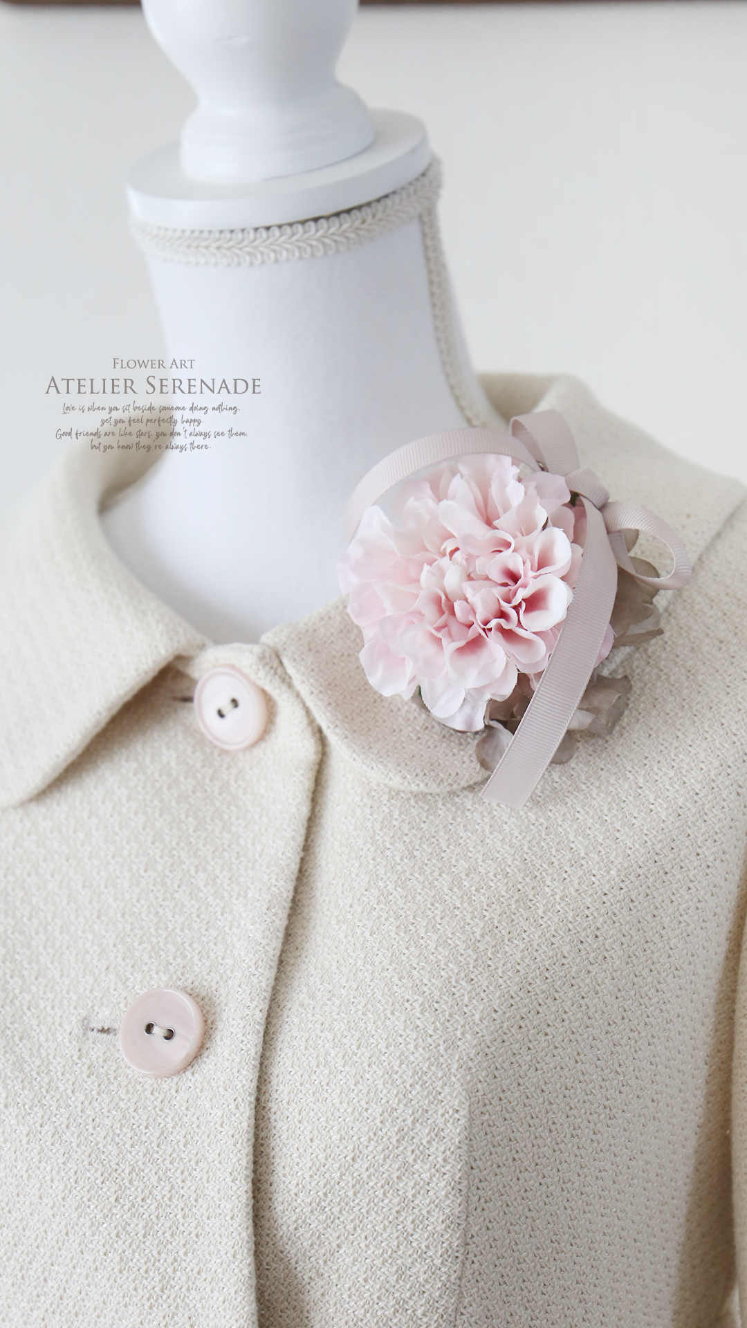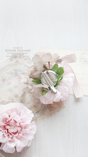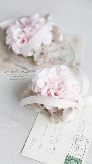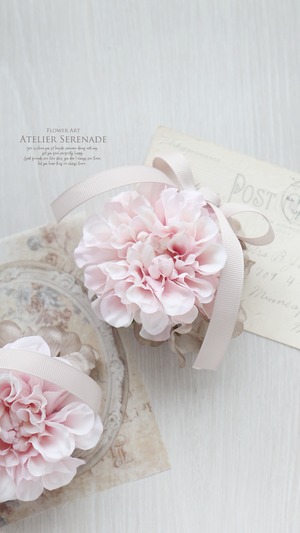 ◆ フリルダリアとグログランリボンのコサージュ -Sakura pink ◆