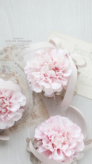 メインとなるダリアのお花は、桜色のような優しい色味。