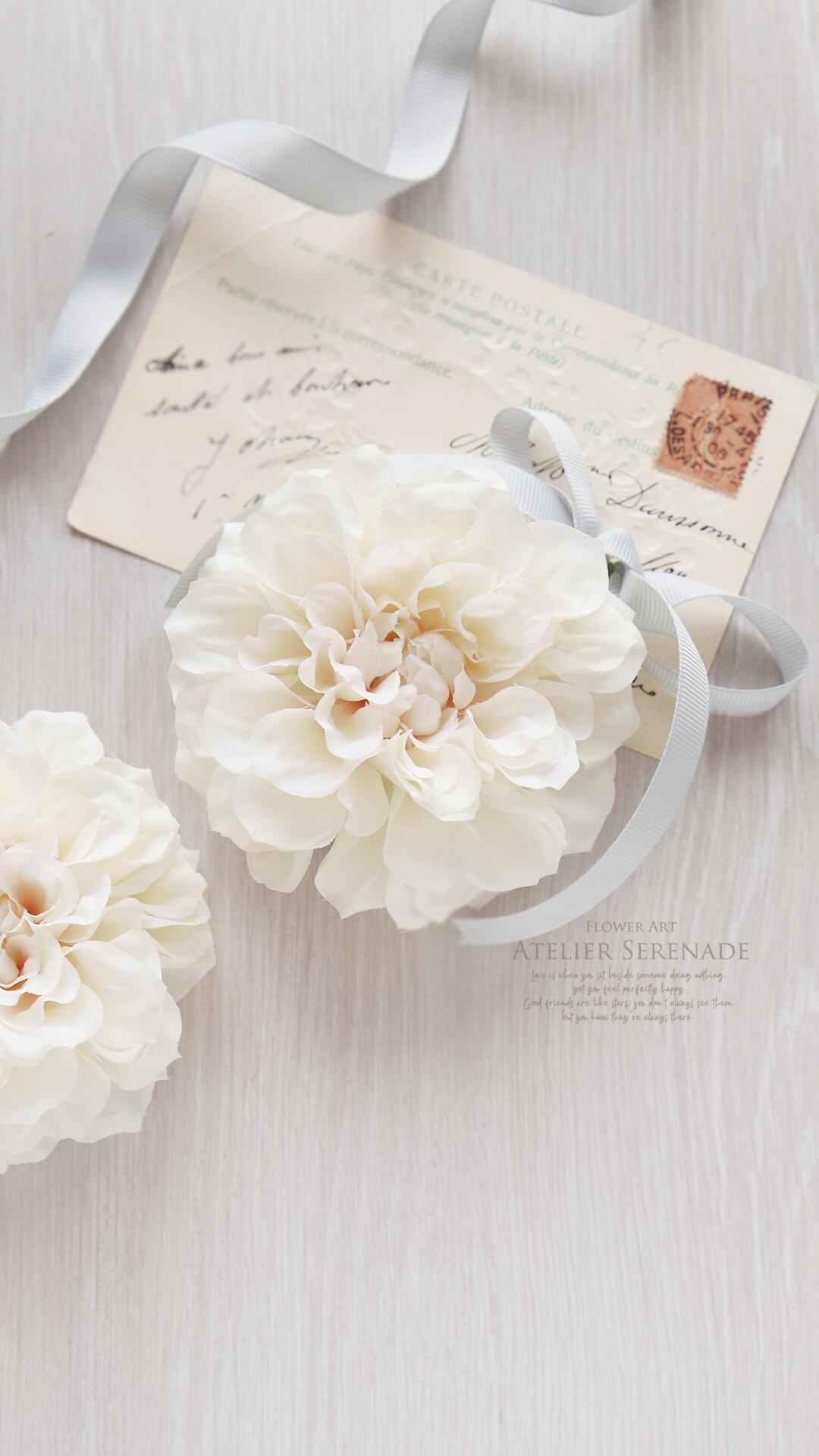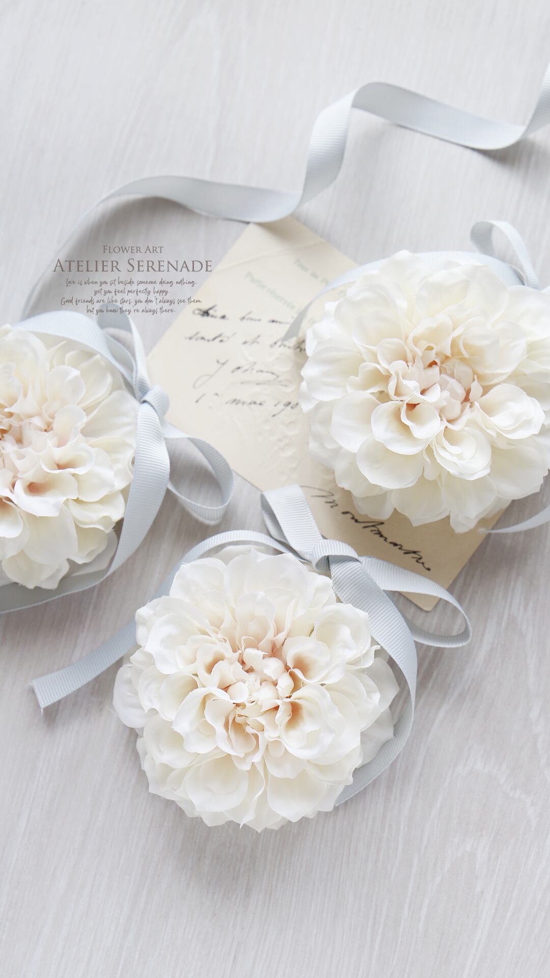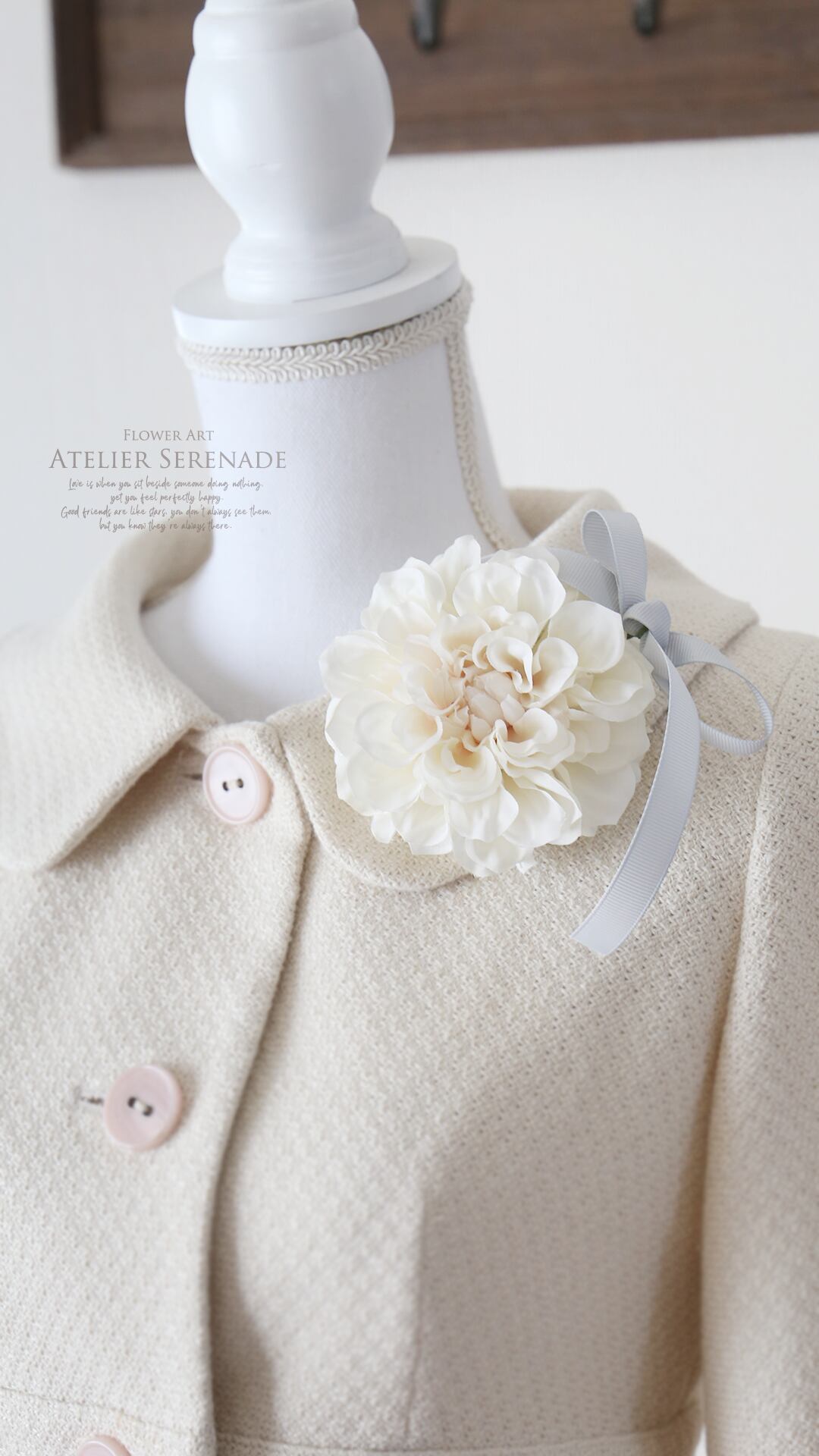 ◆ フリルダリアとグログランリボンのコサージュ -Milky White ◆