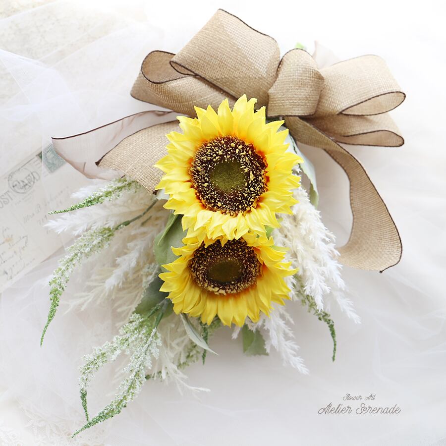 大輪の向日葵にジュートリボン、