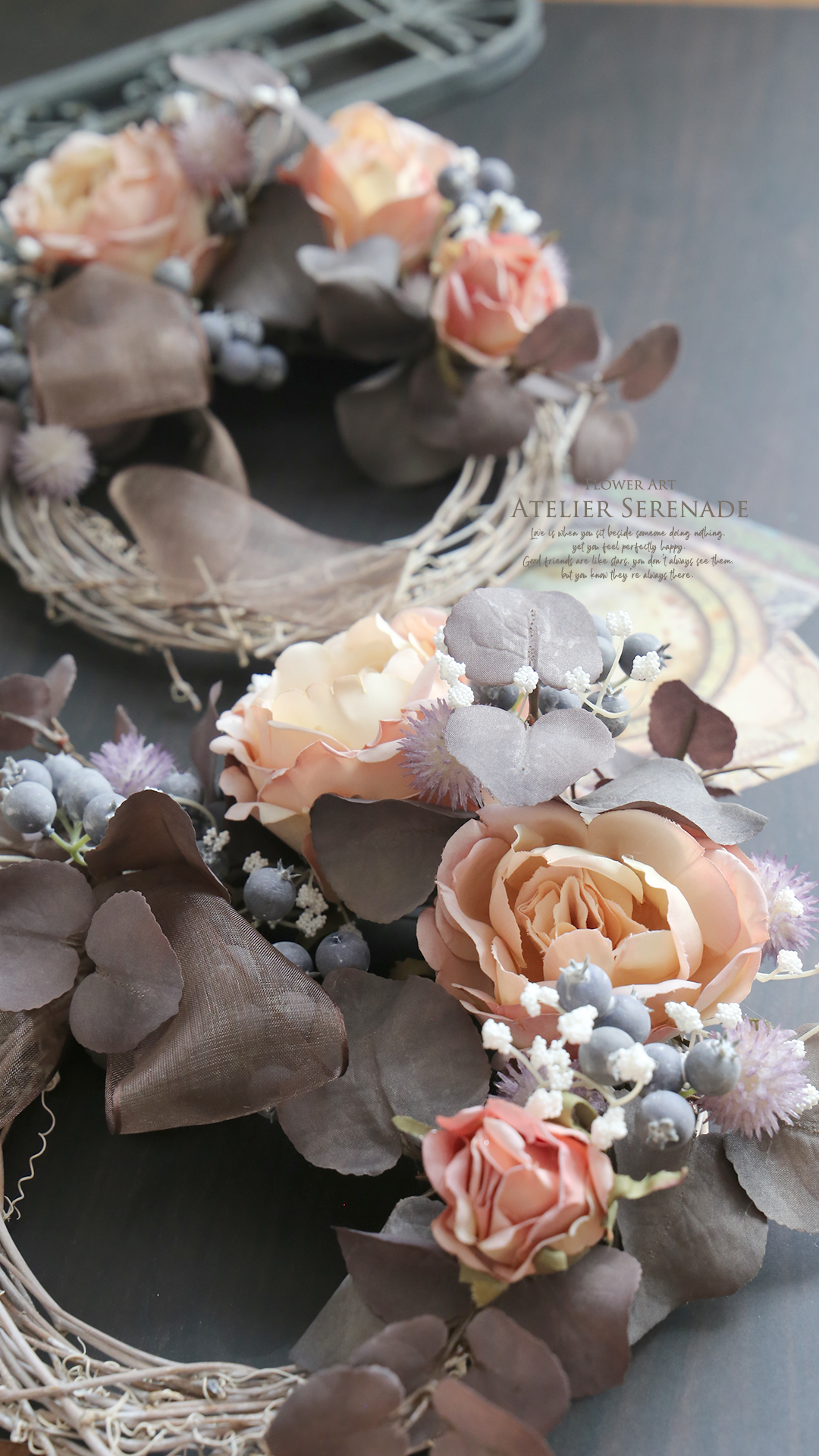 小さな回想録 アンティークリース -Pomme Roses & Sepia leaves